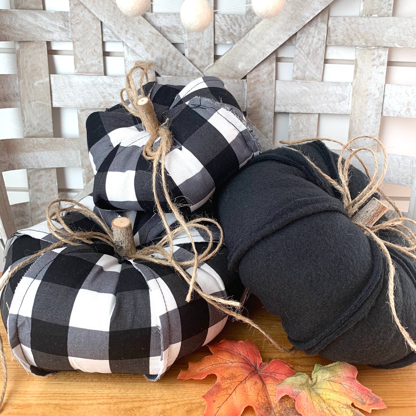 Our sweet pumpkins are perfect for all your fall decorating, in modern prints that reflect today’s most popular styles. Stems are a natural branch Seams are on the outside for a rustic feel Large, printed fabric 8”x5” Medium, fleece 7”x 5” Small, printed fabric 5”. Other home decor shown not included.