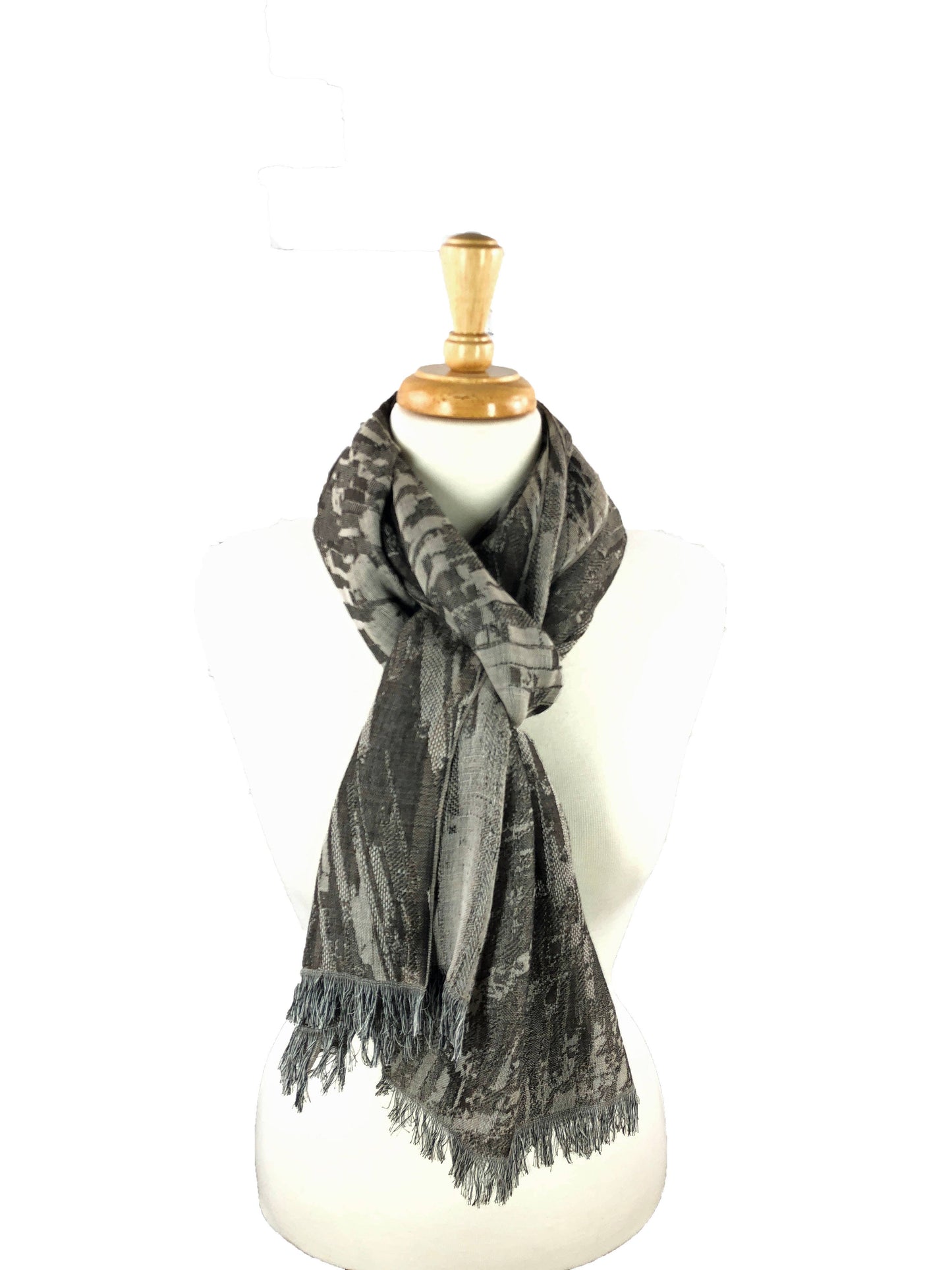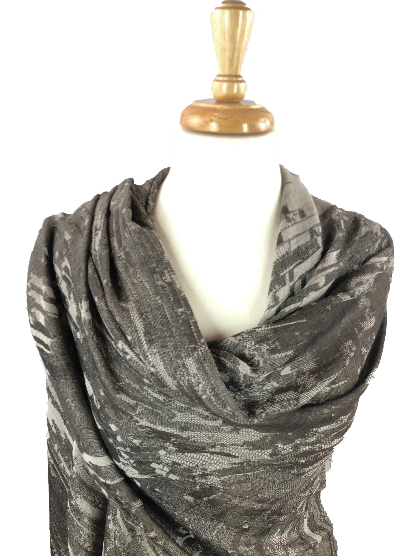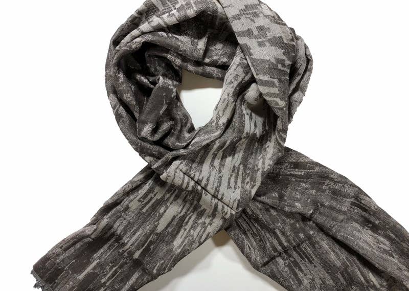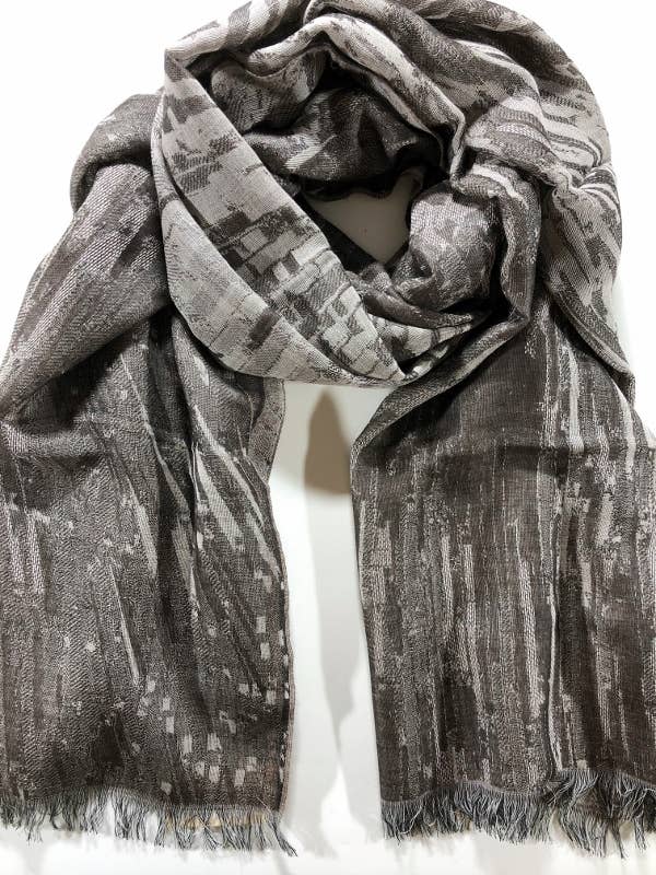Bark Gray Cotton and Wool Blend Abstract Scarf
