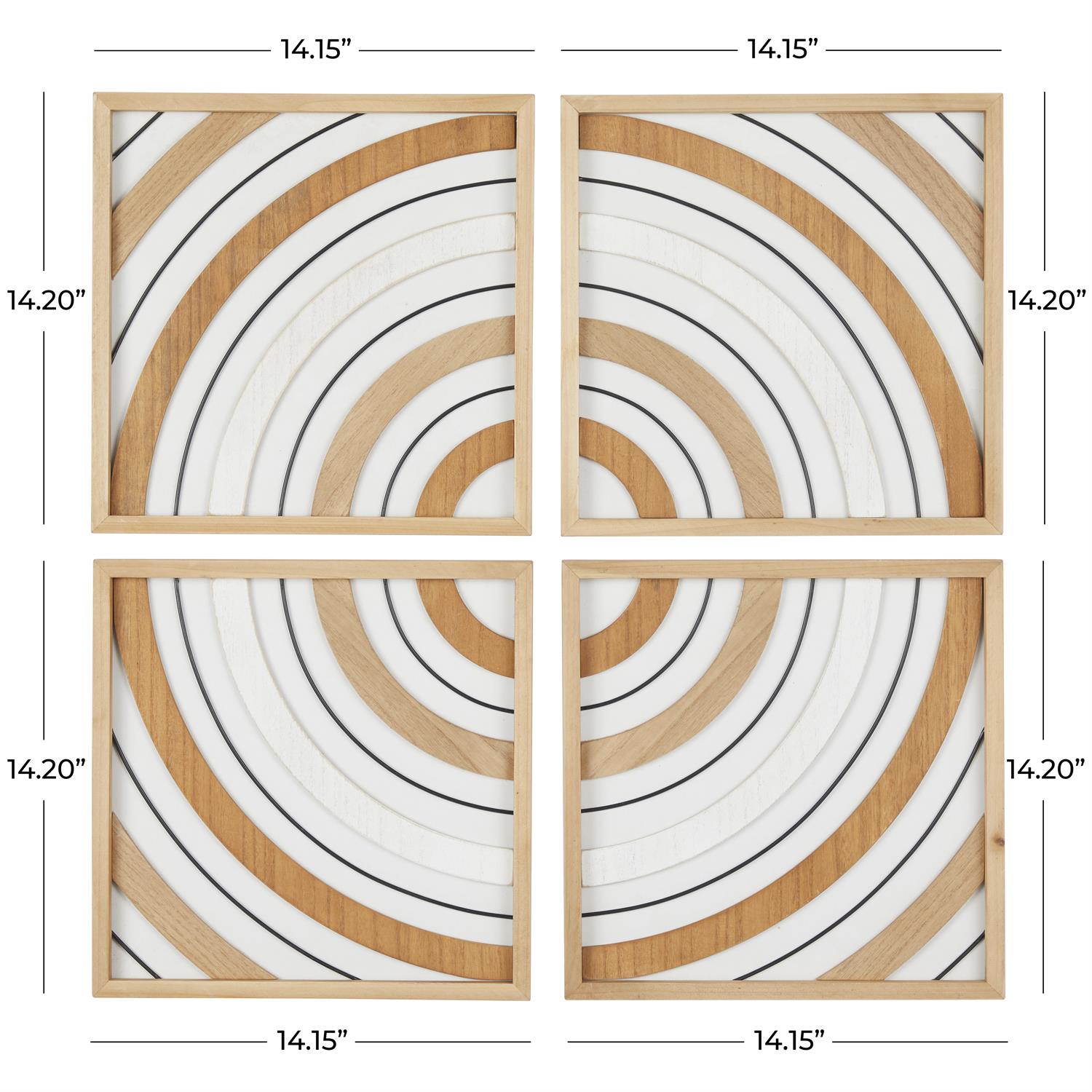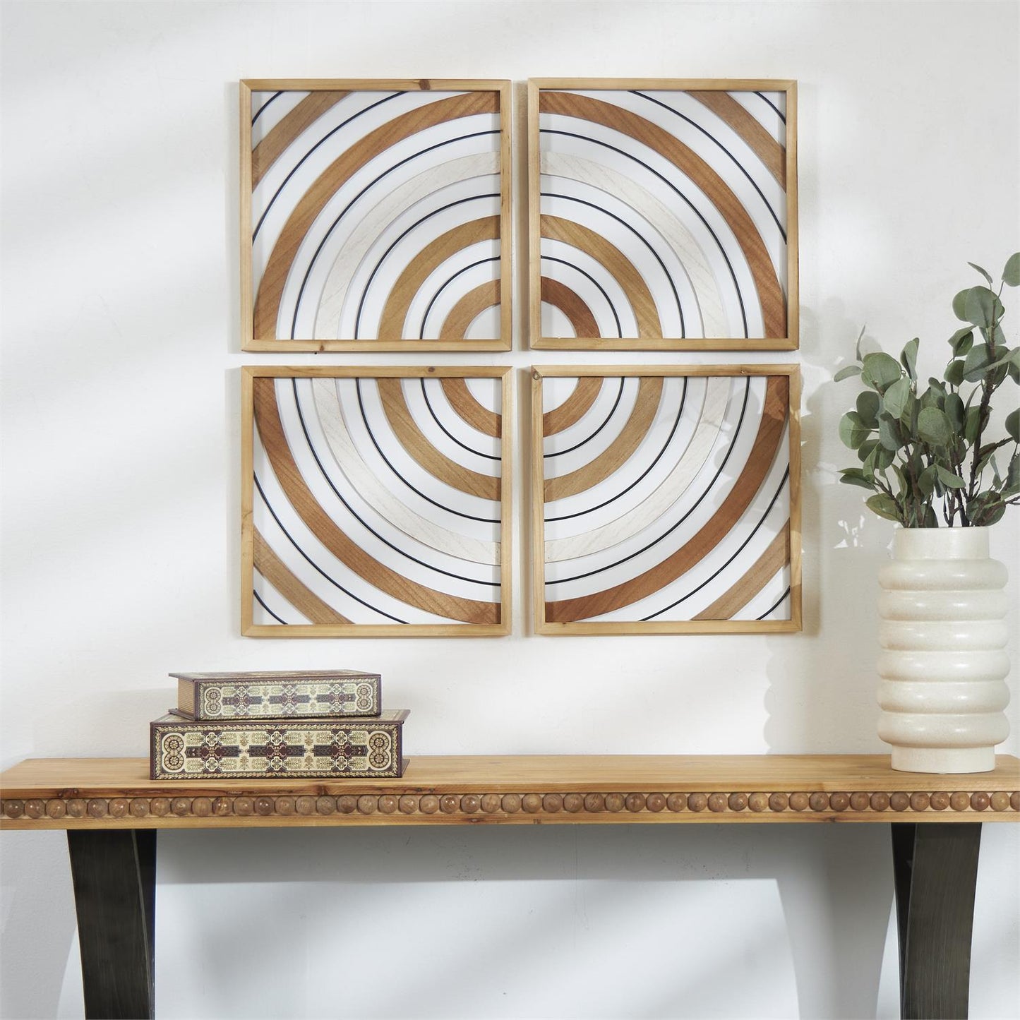 BROWN WOOD GEOMETRIC HANDMADE MIXED MEDIA WALL DECOR WITH VARYING CIRCLES, SET OF 4
