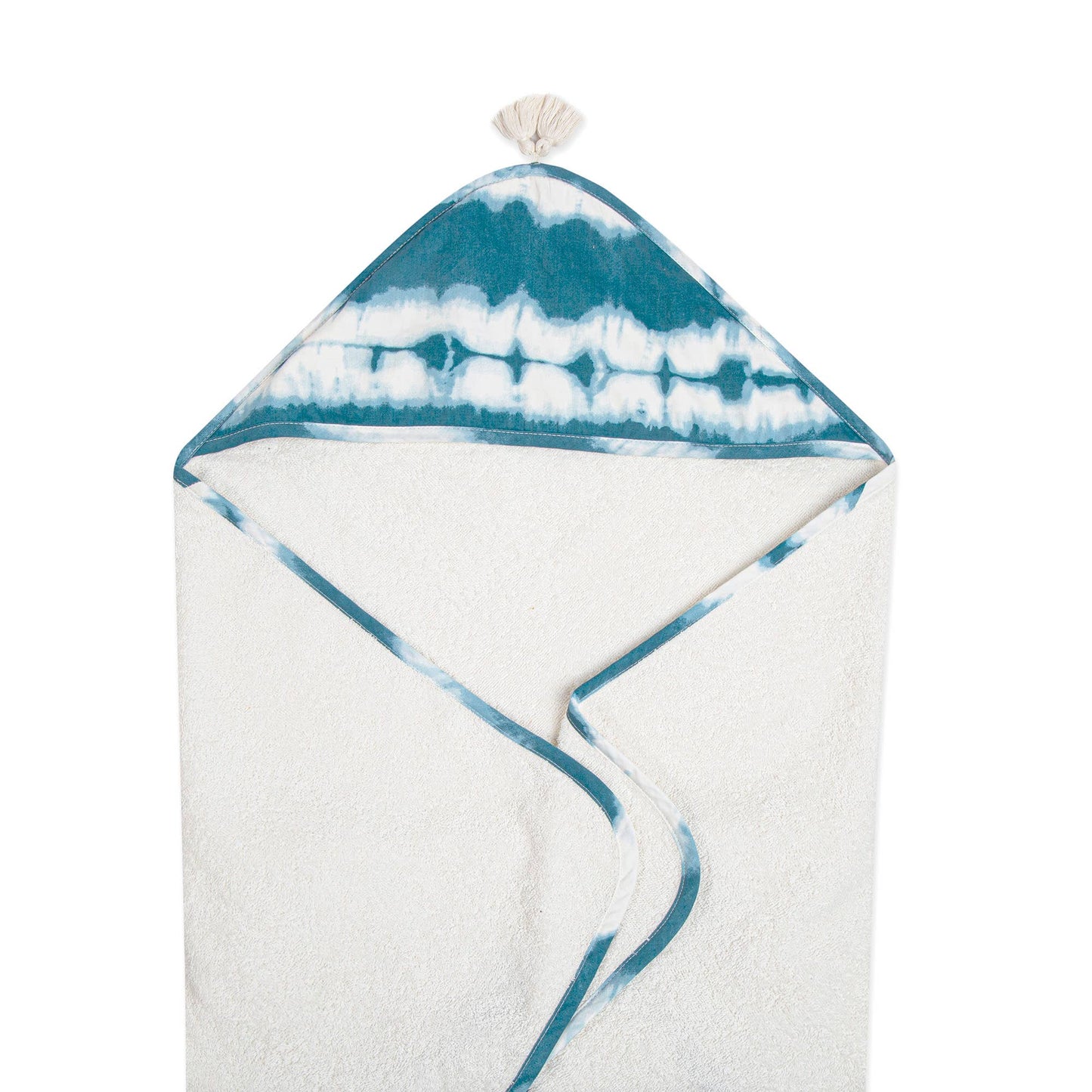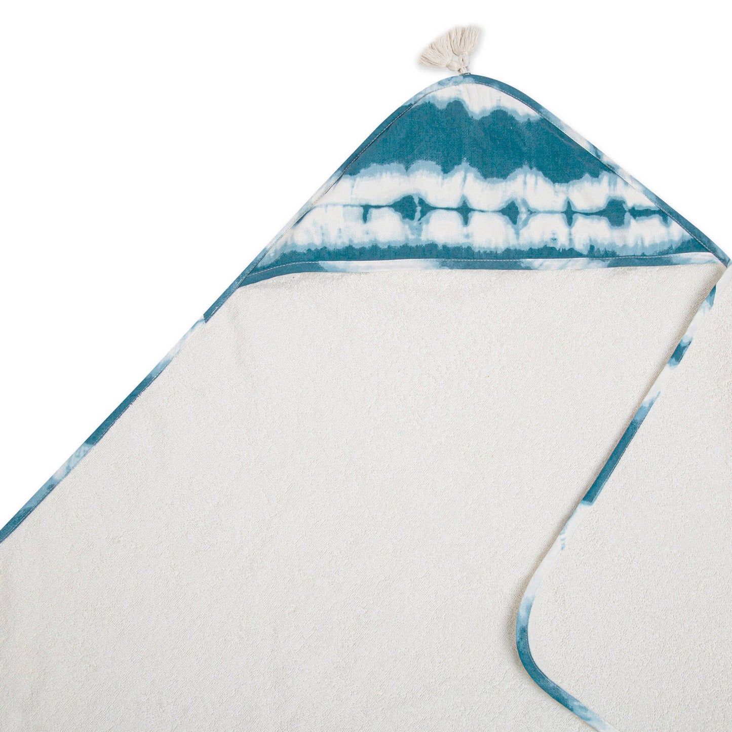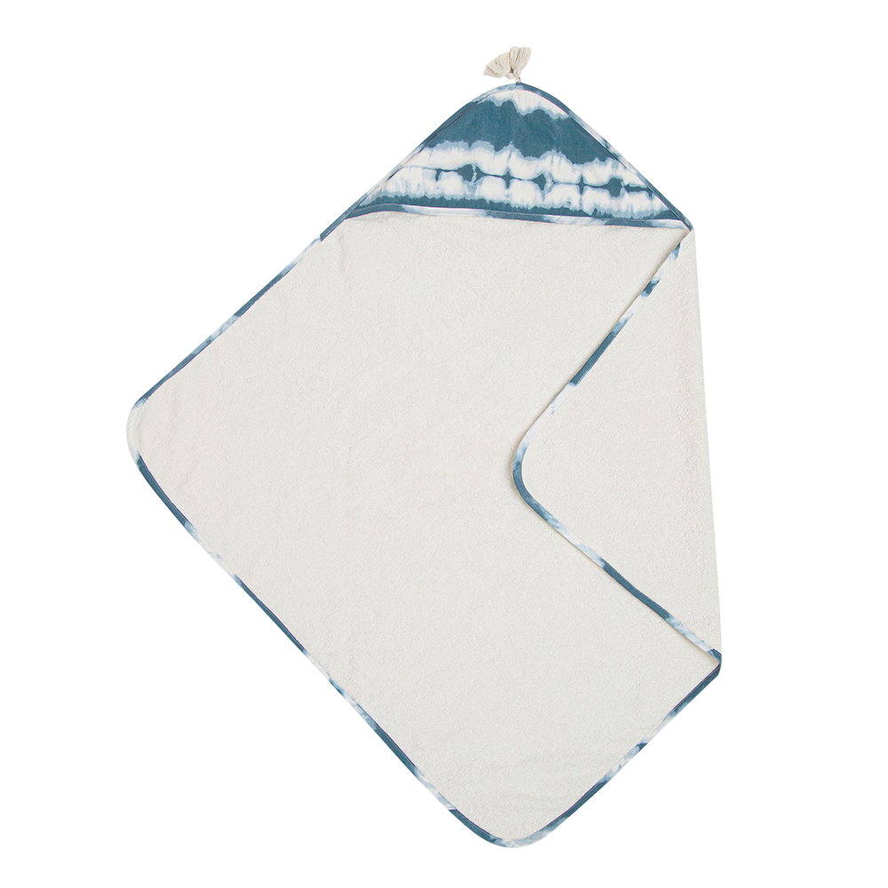 Wrap your baby in the coziest 100% cotton hooded bath towels around. Cotton terry cloth with soft cotton sateen accents. Available 3 designs including blush tie-dye, indigo tie-dye and copper dash.