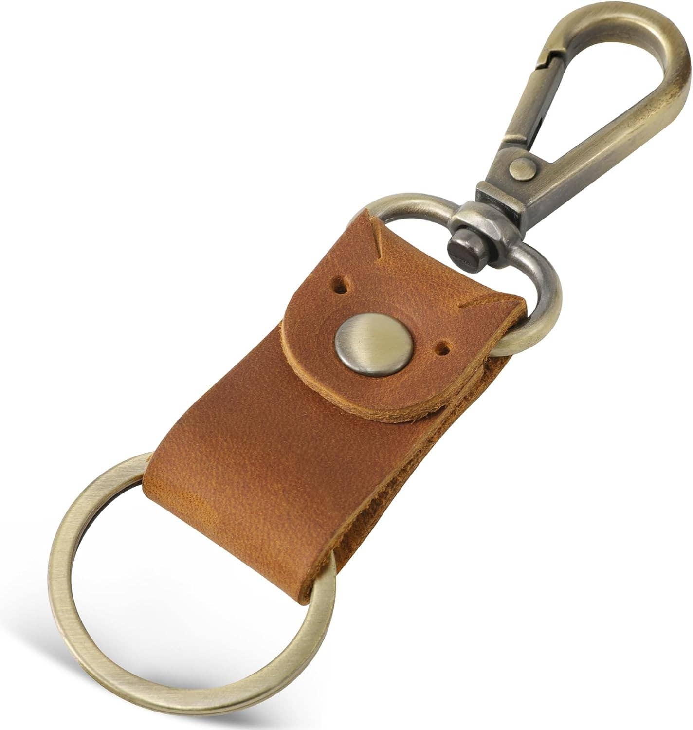 Genuine Leather Keychain, Small Keychain for Men and Women, Key Holder Men's Belt Key Chain Ring Premium leather - The key chain is made of high-quality leather, with natural texture and a warm feel, with a soft luster. Always maintain a soft glossy appearance and a delicate touch. Simple and practical - Key chains are great for storing and organizing your personal keys, including home keys and car keys for everyday use; The soft leather key chain can be carried around without fear of collision with other items and damage the leather quality. Perfect gift- This key ring fits the palm of your hand and is perfect for car keys, home keys and office keys. The classic stylish exterior design of keychains is perfect for family and friends as gifts for birthdays, anniversaries, Christmas and all other holidays. Package includes- Key ring package includes 1 real leather key ring, 1 key rings. This key ring has six colors: Blue, Dark Brown, Black, Brown, Green and Red.