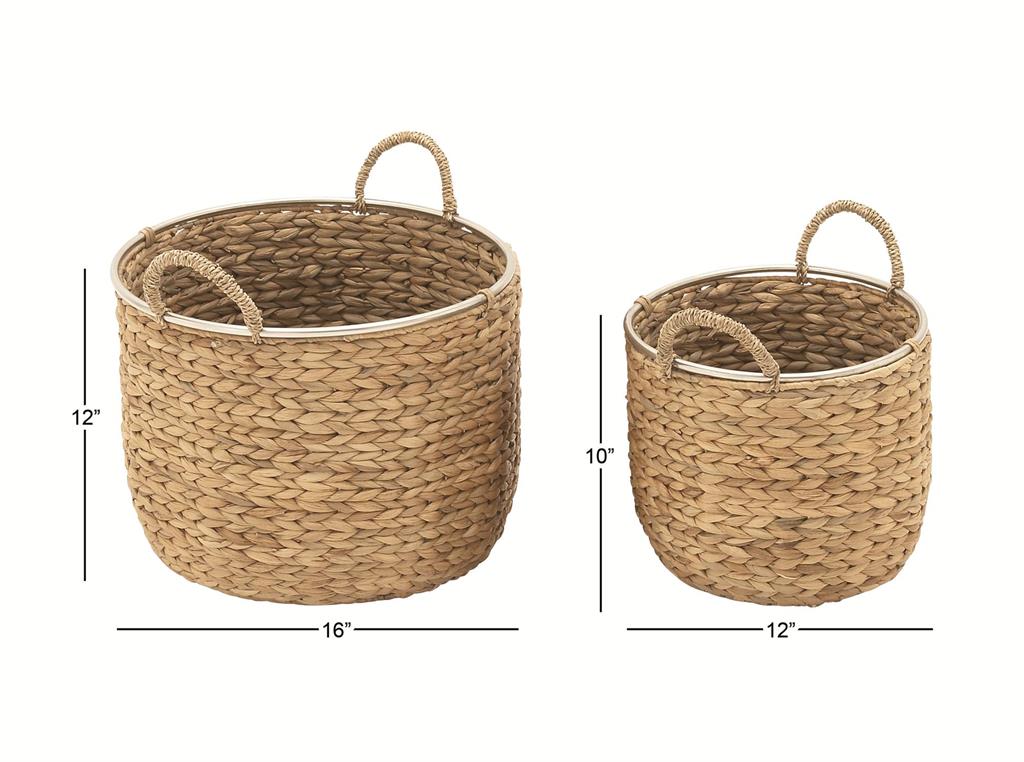 Experience blissful serenity with our Light Brown Seagrass Handmade Storage Basket. Crafted from durable seagrass and metal, this basket set brings effortless charm to any space. The textured finish and metal rim add style and practicality, while the wide rim design and intricate tan braiding make them versatile and elegant. Available in two sizes. These baskets are the perfect addition to your home decor.