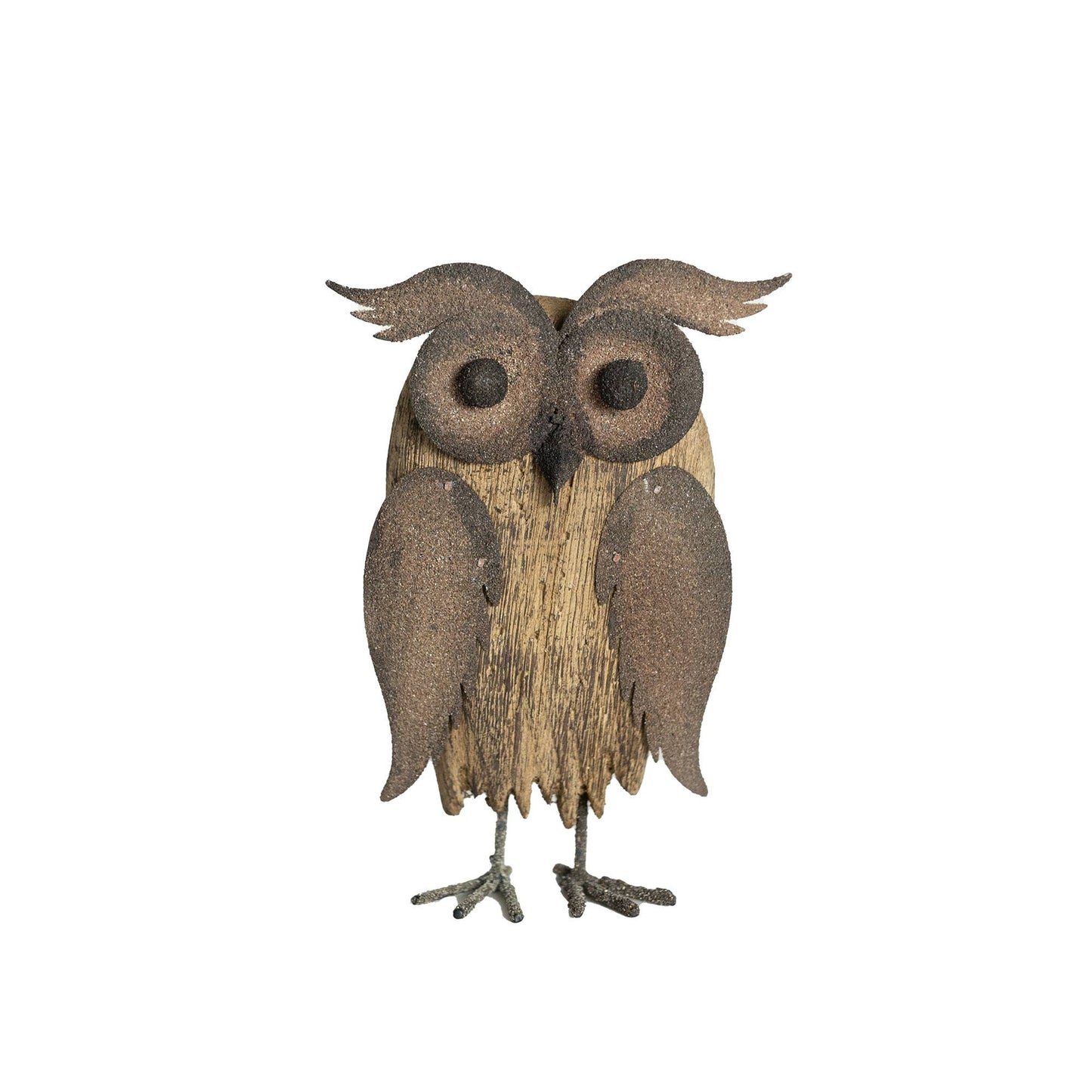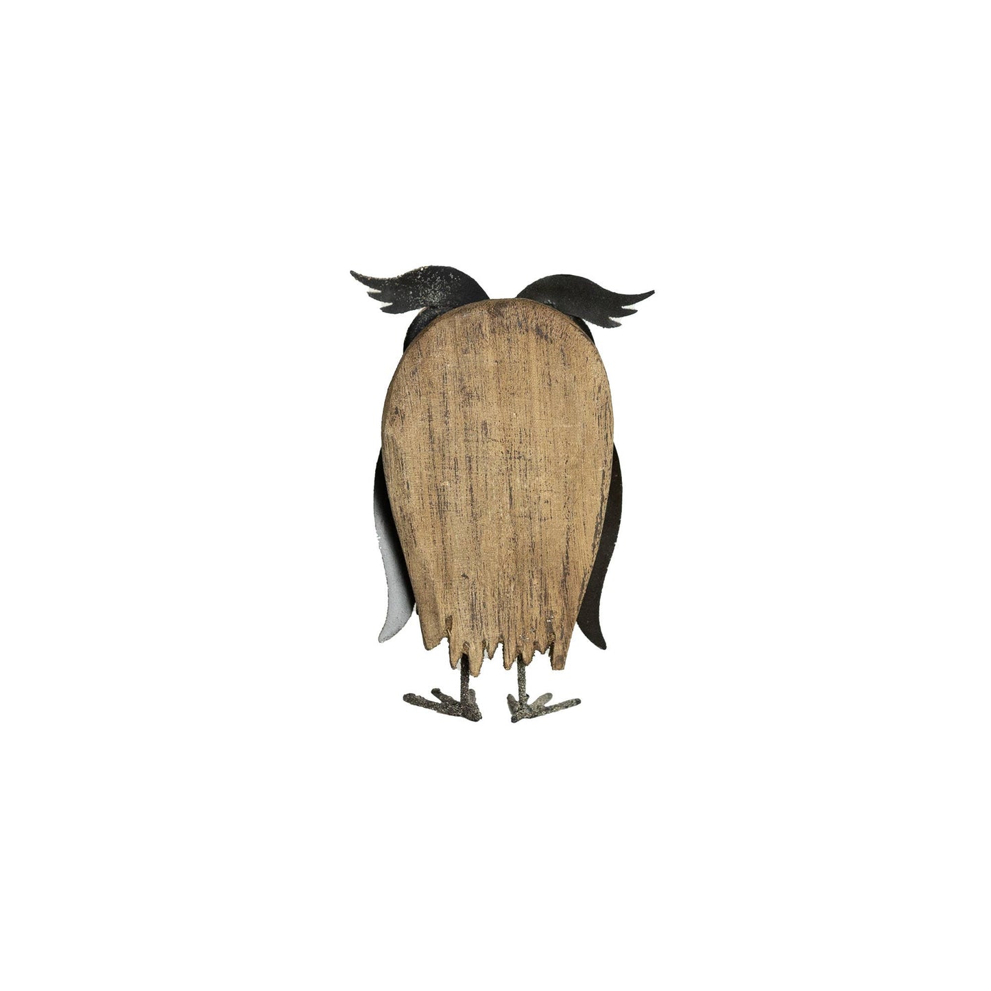 For a whimsical and novel touch, a classic barn owl figure is the perfect accent for a bookshelf, mantel, or coffee table. Constructed of natural wood and distressed metal, this rustic farm decor piece adds just the right amount of charm to your home. Style in multiples for a conversational touch. Quirky icon of a classic barn owl. Dimensions: 4 x 1.25 x 5.25"H Materials: Wood & Metal. A combination of rustic metal and distressed driftwood. A great compliment to your decor.