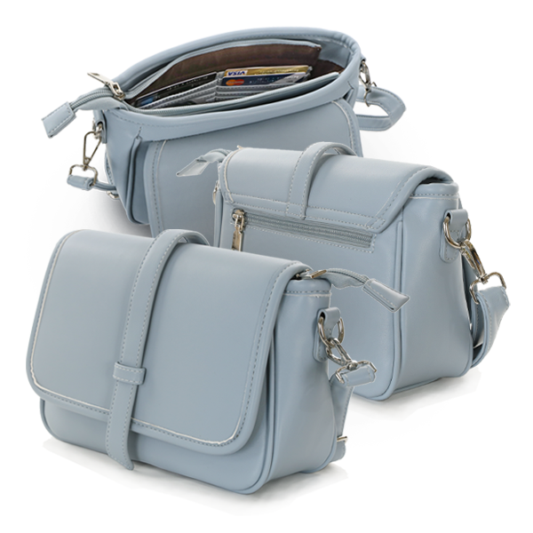 This soft, smooth and light weight multi pocketed shoulder bag is secured by a magnetic top flap and with a zipper pocket under the flap.