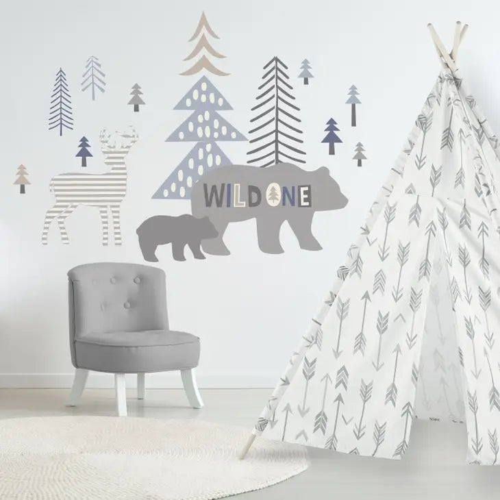 The Baby Logan Wall Decal is an adorable accent to the nursery. Inspired by an adventurous scene of bears and trees, the Logan Wall Decal features a mama bear, her cub, majestic trees and a friendly deer. This item perfectly complements the other items in the Baby Logan Collection, enjoy for years to come!